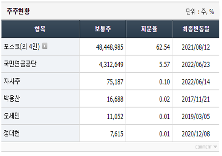 최근 대주주 등의 주주현황을 보여드리는 자료입니다.